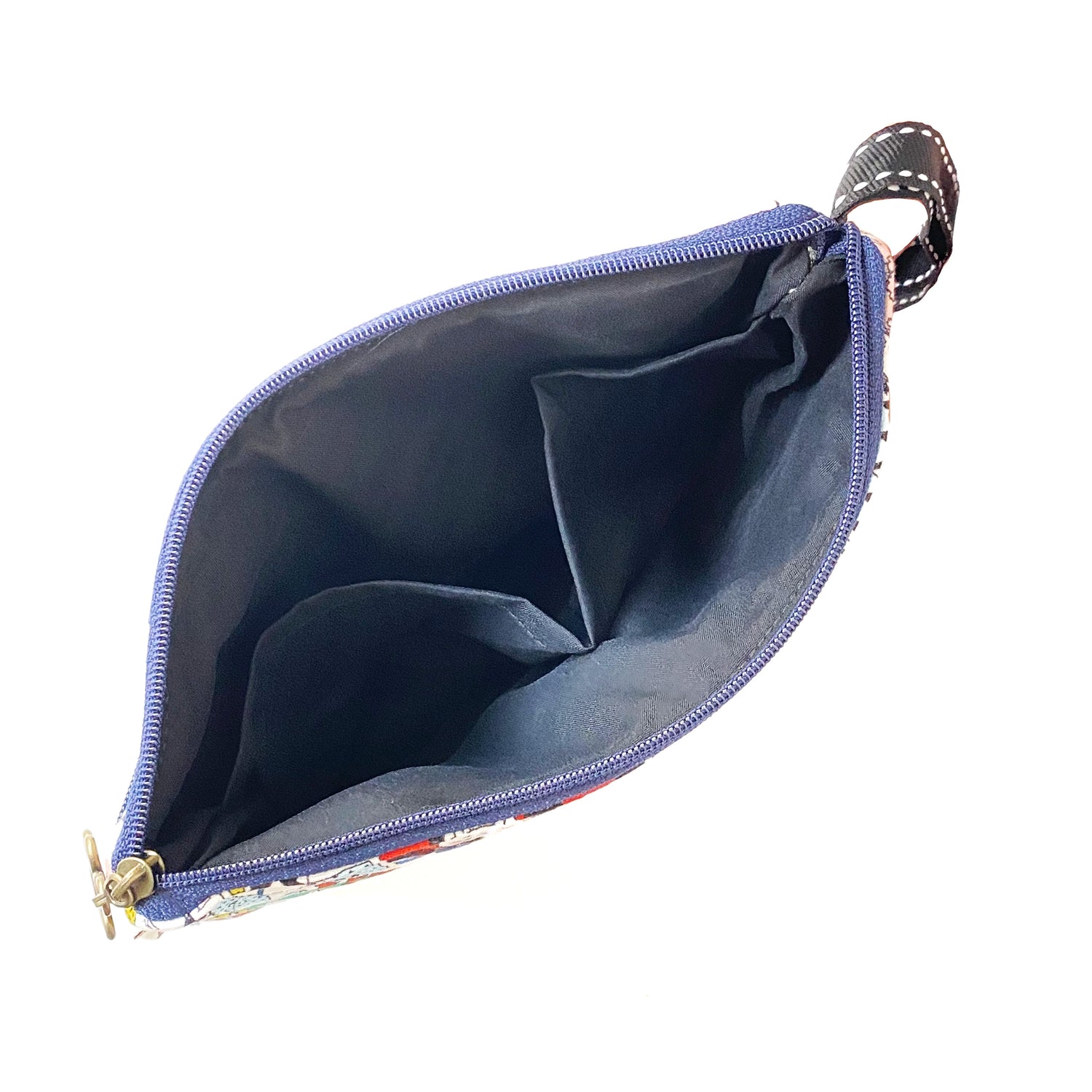 This Hand Pouch is a perfect size for your phone, passport, and essential items. It features two internal pockets for organisation, along with two cute flower-shaped zippers. Whether you're a light traveller, going to a party, or simply need an extra piece in your bag, this pouch is versatile and fashionable. Stay organized and make a statement with our compact Hand Pouch.